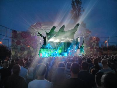 As a bonus I saw posters stating that Dream Theater is playing nearby! I’ve been a fan of them since 1998 and have never seen them live! Everything looked too perfect: the venue was a beautiful tram ride away, it starts after the majority of the F1 events are done, it ended at a decent hour so I could be rested for race day, and tickets were still available! After freshening up after another hot day at the track I walk to the tram and arrive at the venue around an hour before the show starts. I was in line to grab some food when the woman next to me asks me a question in Hungarian. Here we go again! I respond with “I’m sorry?”. She switches to English and asks if I was ahead of her. I had no idea, and it didn’t really matter to me so I said she was first. As I get my food, she asks where I’m from. I tell her I’m going to find some beer and she offers to show me where I can sample some proper Hungarian liquor. I follow her lead and she orders me palinka which is a fruit brandy. Fortunately I’m well adapted to plum whiskey from hazy memories of ThoughtBoarder trips (thanks Radu), so the shot goes down easy. She says she needs to bring the food back to her group and I bid farewell and find a spot in the crowd to watch the show. Ten or fifteen minutes pass and she finds me in the crowd. We continue to chat about music, travel and Hungary. It turns out that her dad brought her to the concert (coolest dad in the world!), and she asked if it was ok to hang out with me during the show (you had to ask?!). You would think that I would have learned my lesson from my previous female encounter… nope. Though I did do a bit better. I wrote down my website and she asked if she could find me on Facebook (I wasn’t sure if my profile was searchable, but I said yes). The show was fantastic and made better by having her company. I got a message from her a few days later and we’re still corresponding! Clearly something supernatural was going on as you can tell from this image of the show.